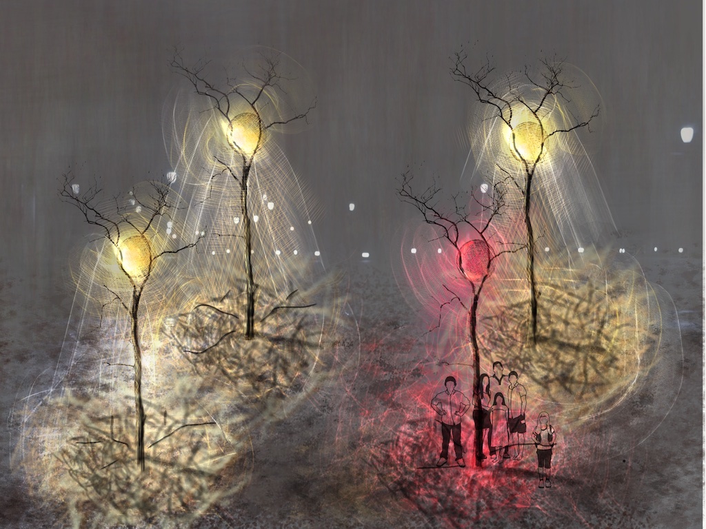 I in 4 is an interactive lighting-based installation that centres on the compelling statistic that one in four people will suffer from a mental health related issue in any one year. In a symbolic and participative way, it explores the notion that by breaking taboos, dissolving labels and truly ‘connecting’ with those who suffer, we can make all difference. The installation uses four trees in close proximity. All are lit in a unique way, but one is obviously in poor health. Through the use of voice-over, soundscape and sensor technology visitors are encouraged to go to the unhealthy tree, connect with it and make it healthy again.